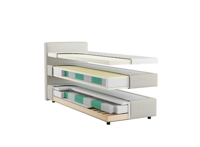 Aufbau: Unterbox, Matratze, und Topper - alles aufeinander abgestimmt