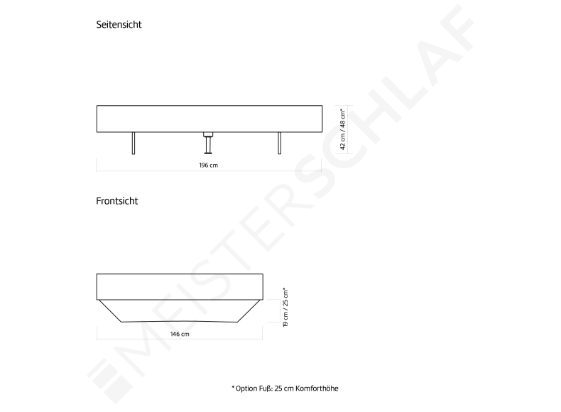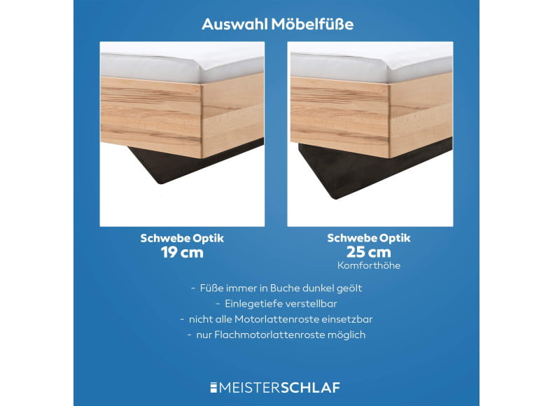 - Ab einer Bettbreite 160 cm ist ein Mittelbalken für Lattenroste in der Lieferung enthalten.