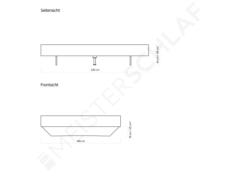 Bettoberkante: 42 (Fuss 19cm) oder 48cm (Fuss 25cm)
