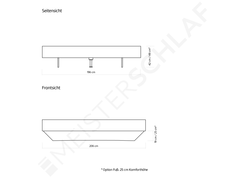 Bettoberkante: 42 (Fuss 19cm) oder 48cm (Fuss 25cm)