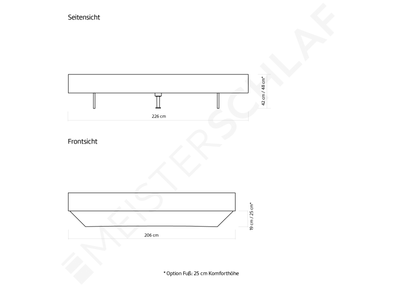 - Ab einer Bettbreite 160 cm ist ein Mittelbalken für Lattenroste in der Lieferung enthalten.