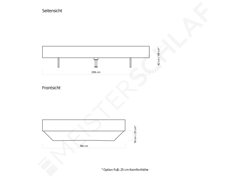 - Ab einer Bettbreite 160 cm ist ein Mittelbalken für Lattenroste in der Lieferung enthalten.