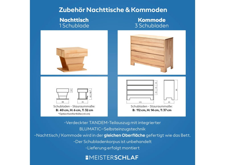 - Ab einer Bettbreite 160 cm ist ein Mittelbalken für Lattenroste in der Lieferung enthalten.