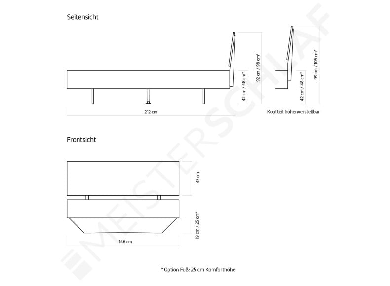 - Ab einer Bettbreite 160 cm ist ein Mittelbalken für Lattenroste in der Lieferung enthalten.
