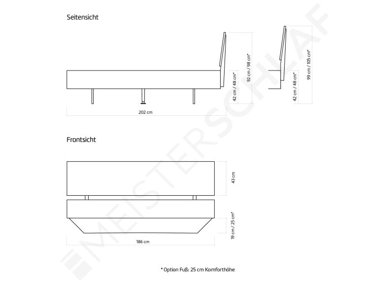 - Ab einer Bettbreite 160 cm ist ein Mittelbalken für Lattenroste in der Lieferung enthalten.