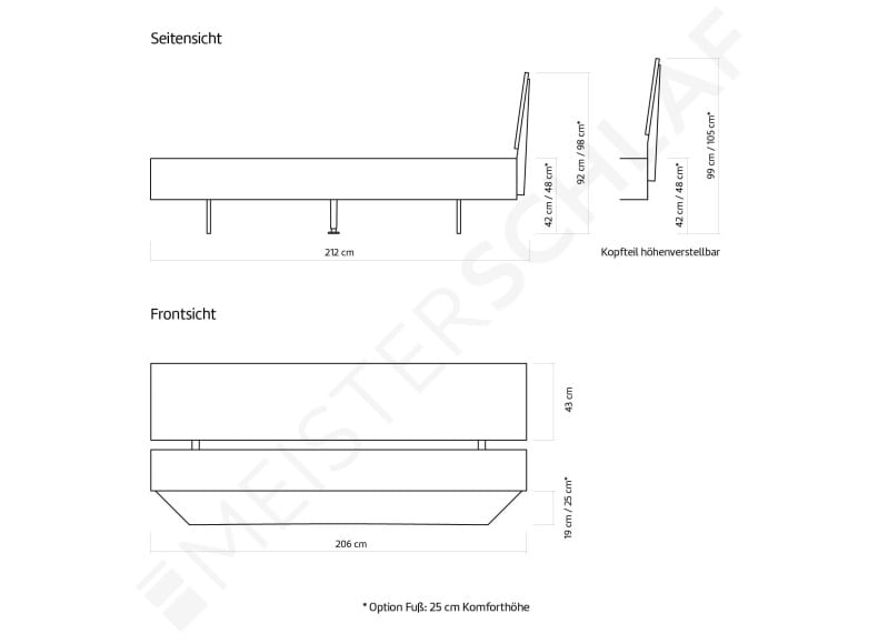 - Ab einer Bettbreite 160 cm ist ein Mittelbalken für Lattenroste in der Lieferung enthalten.