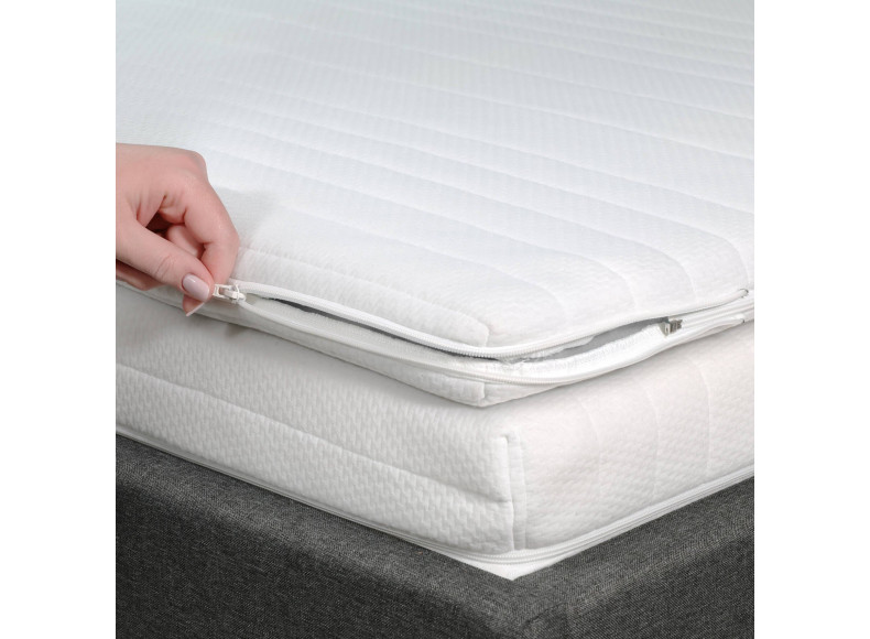 Unser Basic Bezug kann bei bis zu 60 Grad Celsius gewaschen werden (Pflegehinweise siehe Datenblatt), sodass sich die Anzahl der Keime und Bakterien reduziert - ideal für Allergiker. Aus ökologischer Sicht empfehlen wir jedoch den Bezug bei 40 Grad Celsius zu waschen. Durch den praktischen 4-seitigen Rundum-Reißverschluss lässt sich der Topper-Bezug sehr einfach und kinderleicht Ab- und Beziehen und in zwei Hälften teilen. Natürlich können die zwei Bezugshälften getrennt voneinander gereinigt werden.