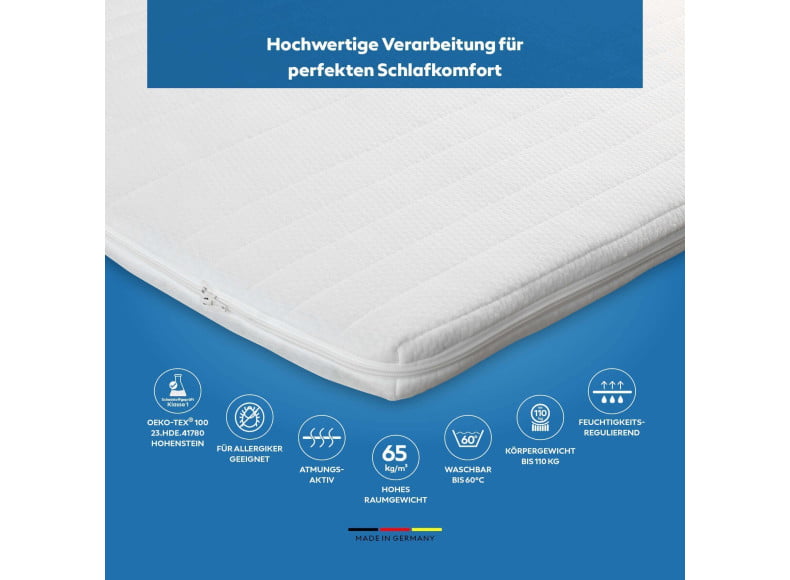 Besonders langlebiger und Temperatur regulierender Latex-Topper - Made In Germany